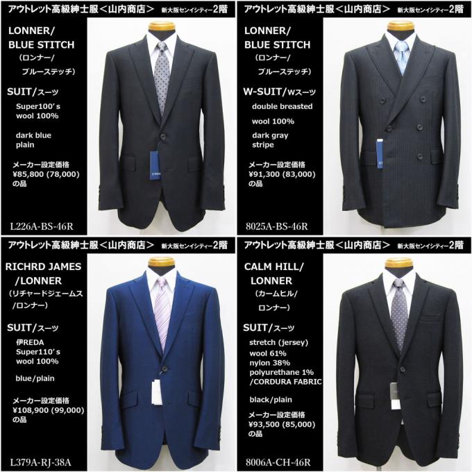 日本製高級品「LONNER」のスーツ・ジャケット入荷しました!いつもの通り、すべてのサイズは揃いませんが、サイズが合えばお買得!