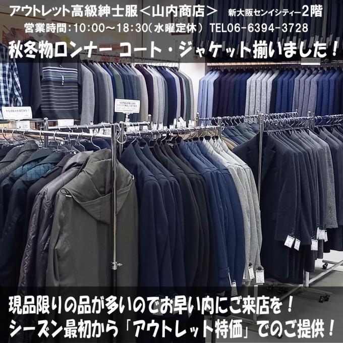 「高級品メーカーのアウトレット商品」中心の「山内商店」では、昨年の暖冬の影響等で高品質のコートの品揃えが例年より豊富です!