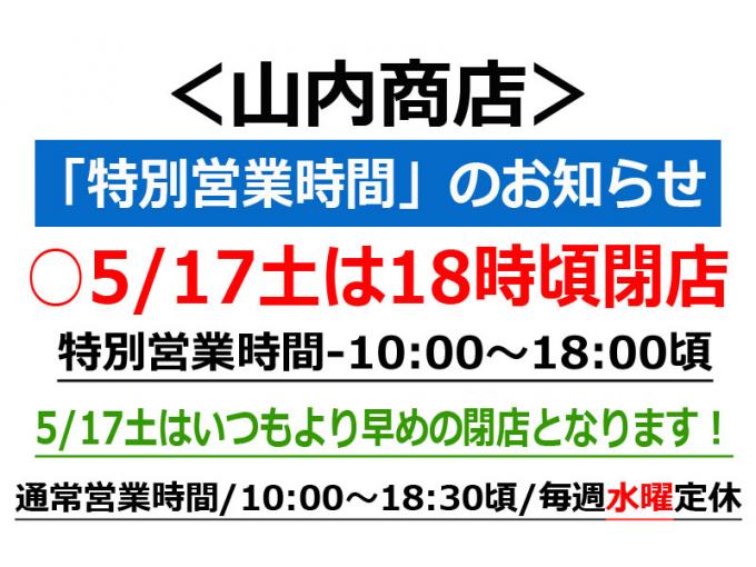 2025/5/17土-特別営業時間のお知らせ!山内商店