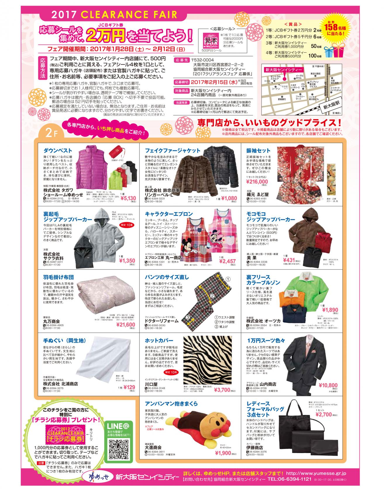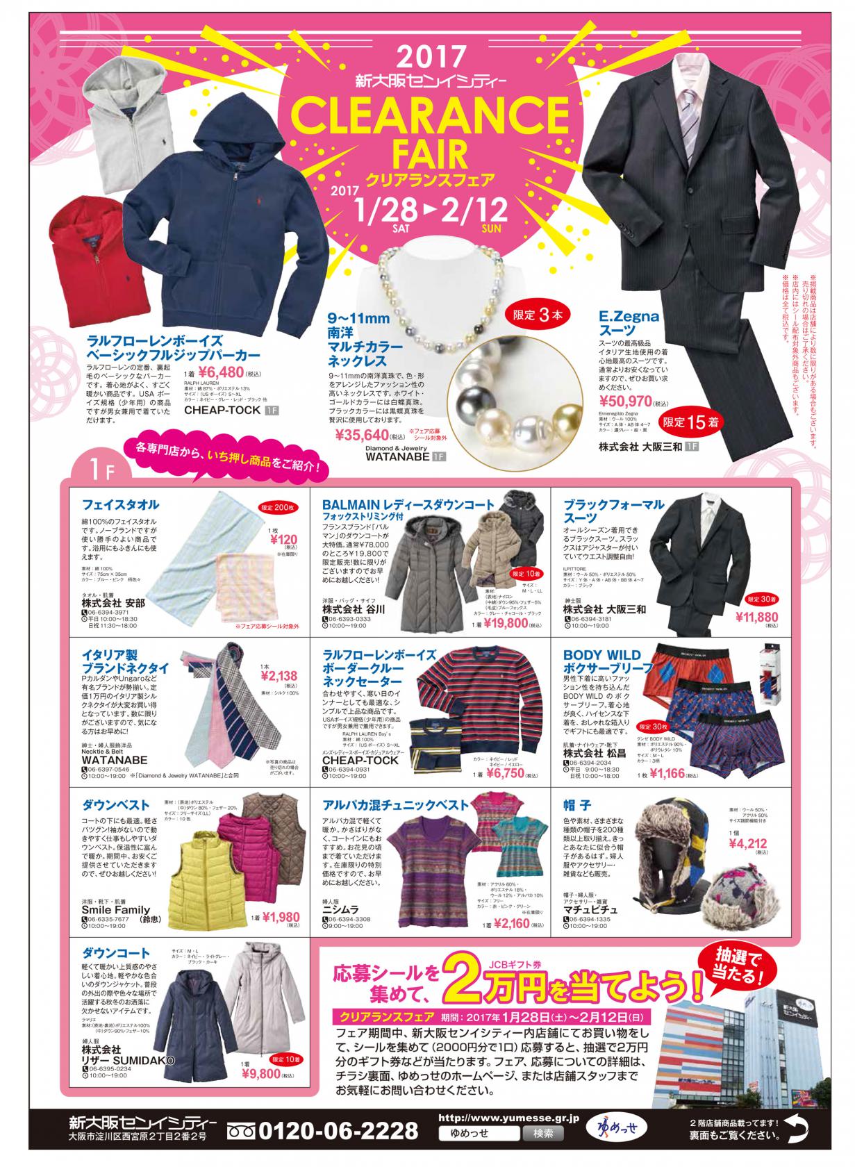 1月28日(土)~2月12日(日)の期間「クリアランスフェア」を開催中です。 2,000円お買い上げごと(500円ごとに補助シール[4枚で1口ご応募いただけます])にJCBギフトカードをはじめ、センイシティーご利用券が抽選で総勢158名様に当たる応募シールをお配りしております。 是非、この機会にお越し下さい。(^O^) ↓↓↓ クリアランスフェアのチラシがご覧いただけます ↓↓↓